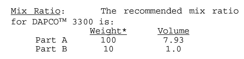 Note for Mix Ratio Weight |