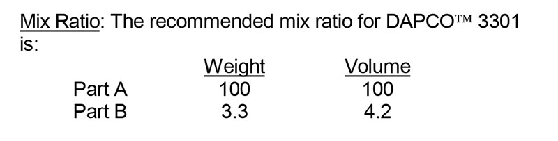N/A Syensqo (DAPCO™) 3301 demonstrates good adhesion when bonding silicone rubber sheet stock, extrusions, and RTV compounds to themselves as well as metal, glass and plastic substrates. Syensqo (DAPCO™) 3301 can be applied using a variety of methods develops a flexible bond whe |