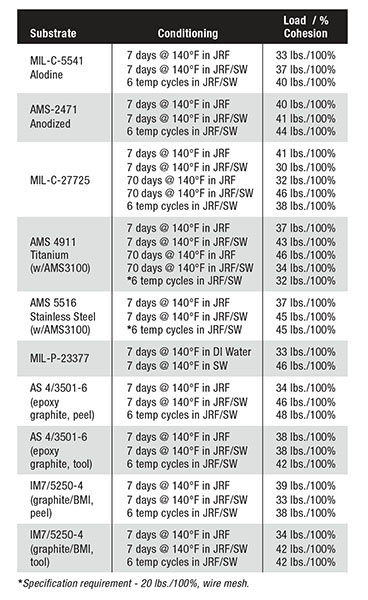| Repairability2 | N/A 50 piw/100% Cohesive Failure |